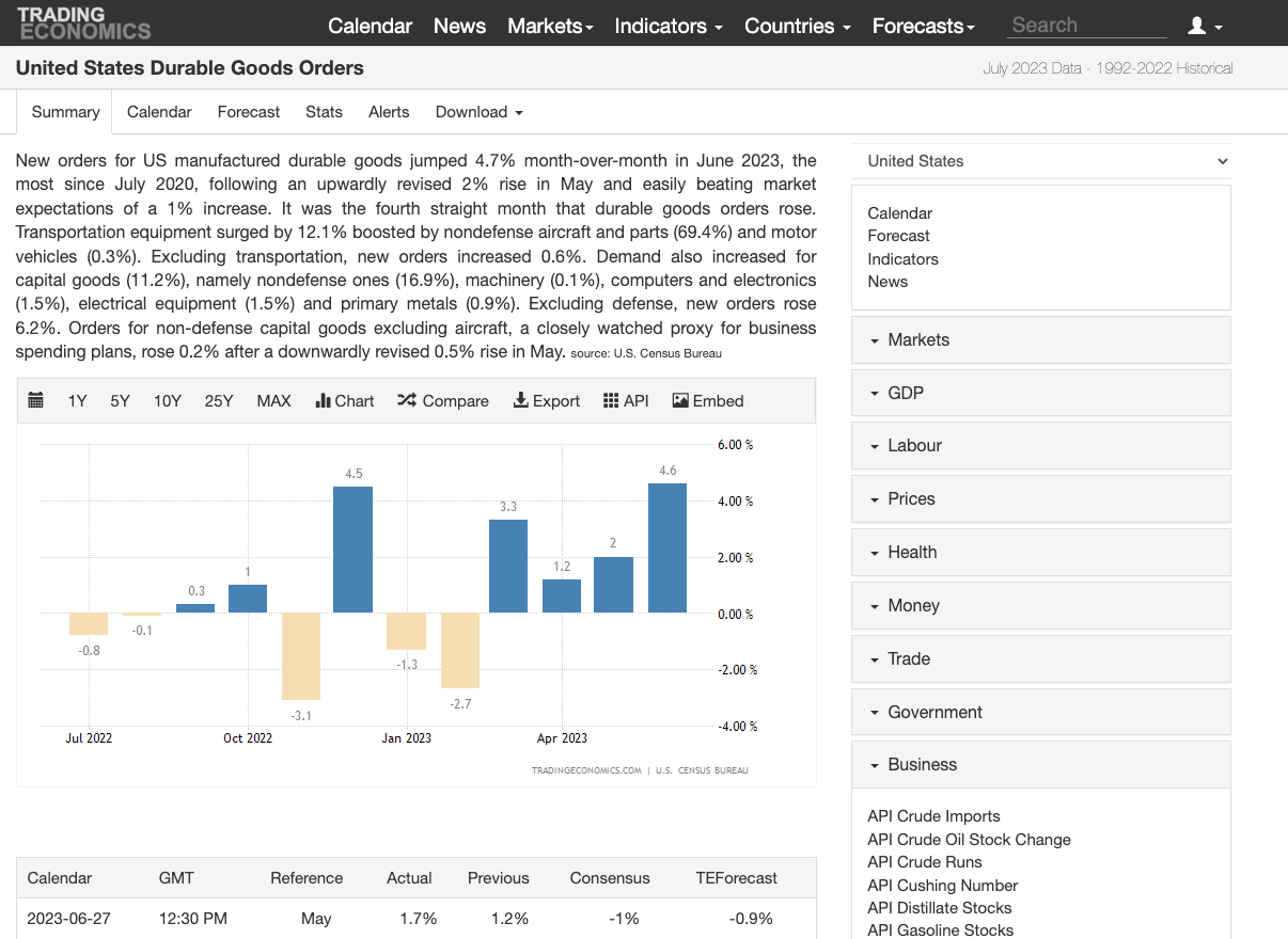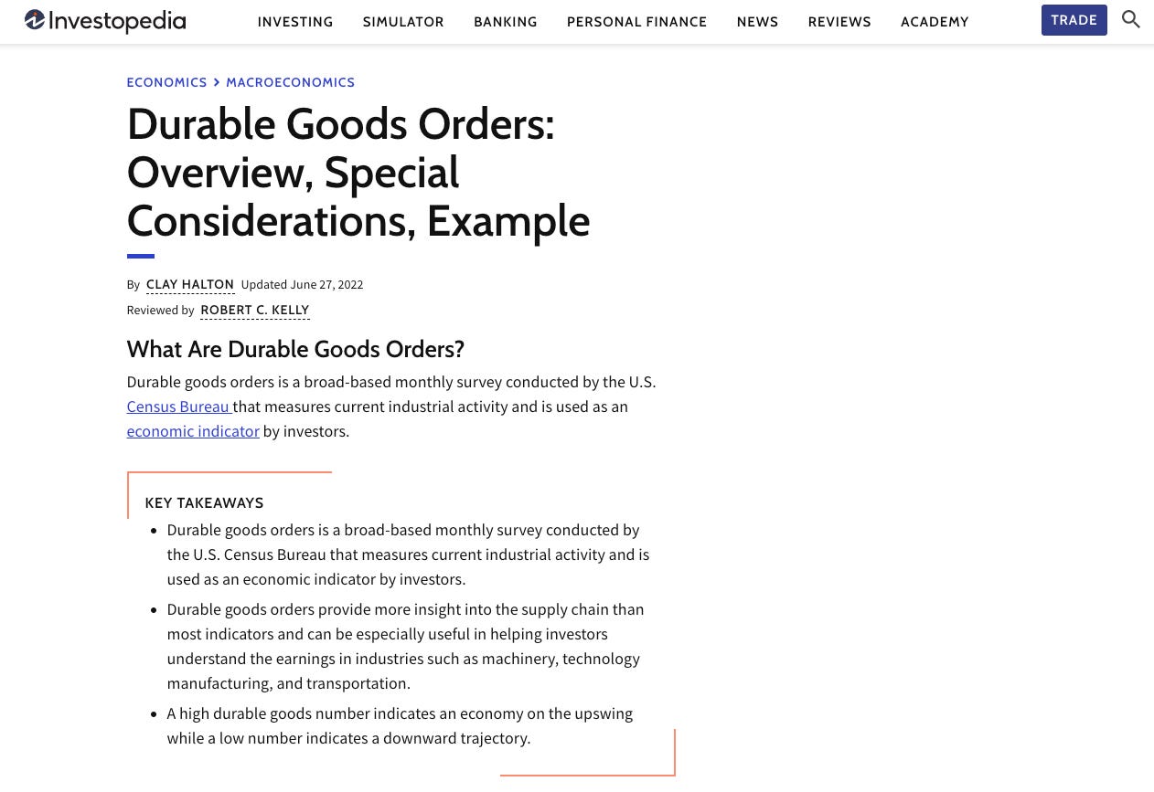 If you come across a term you're unfamiliar with, such as "durable goods report", a quick search on Investopedia provides a clear definition and context to enhance your understanding.