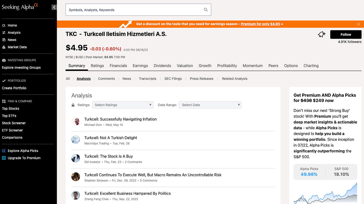 A platform that offers crowd-sourced content on stocks, markets, and economic trends, along with earnings call transcripts and investment ideas.