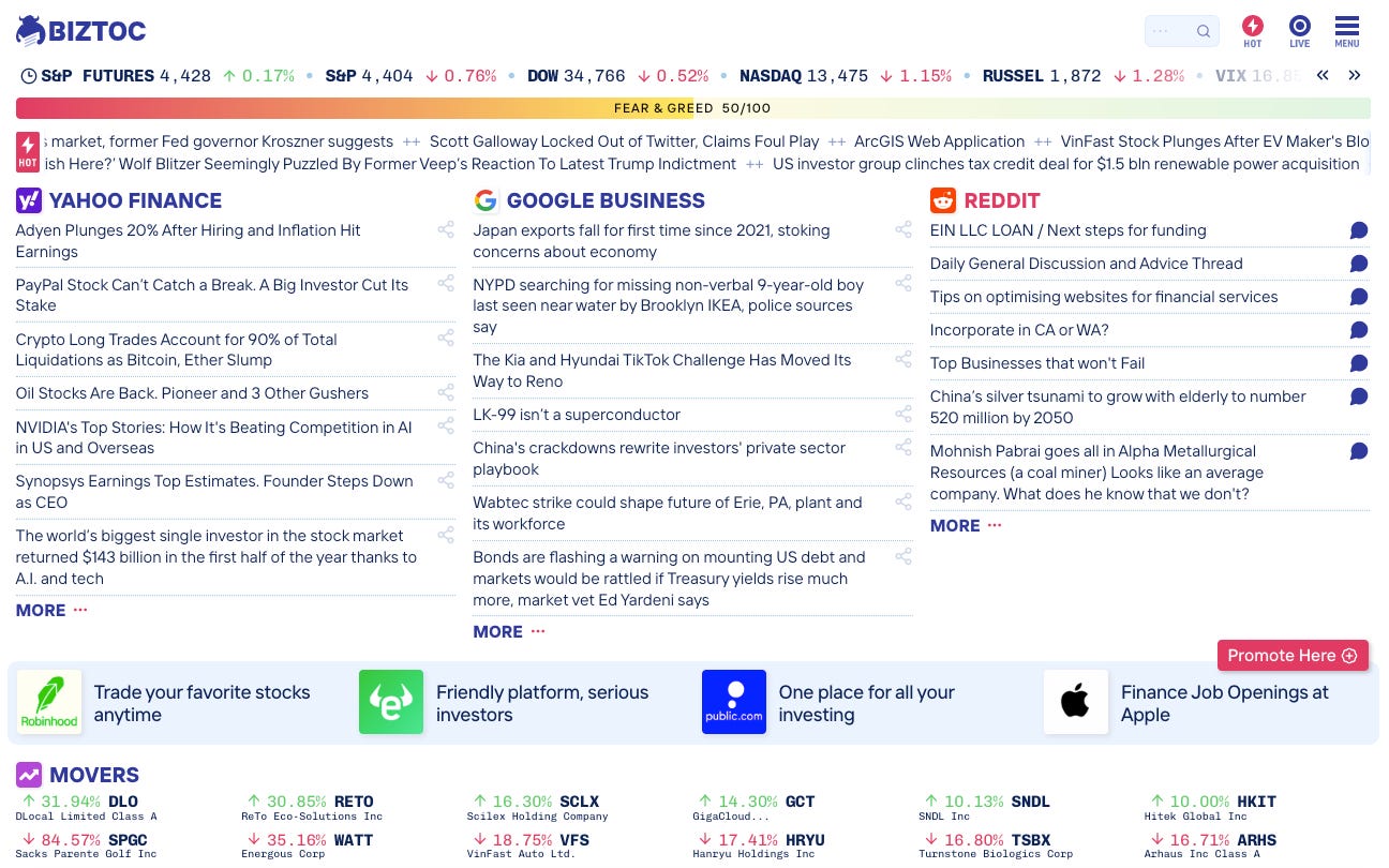 Biztoc consolidates top business sources like Yahoo Finance, Google Business, The Wall Street Journal, Reuters, Marketwatch, ZeroHedge, Youtube or Reddit into one comprehensive news hub.