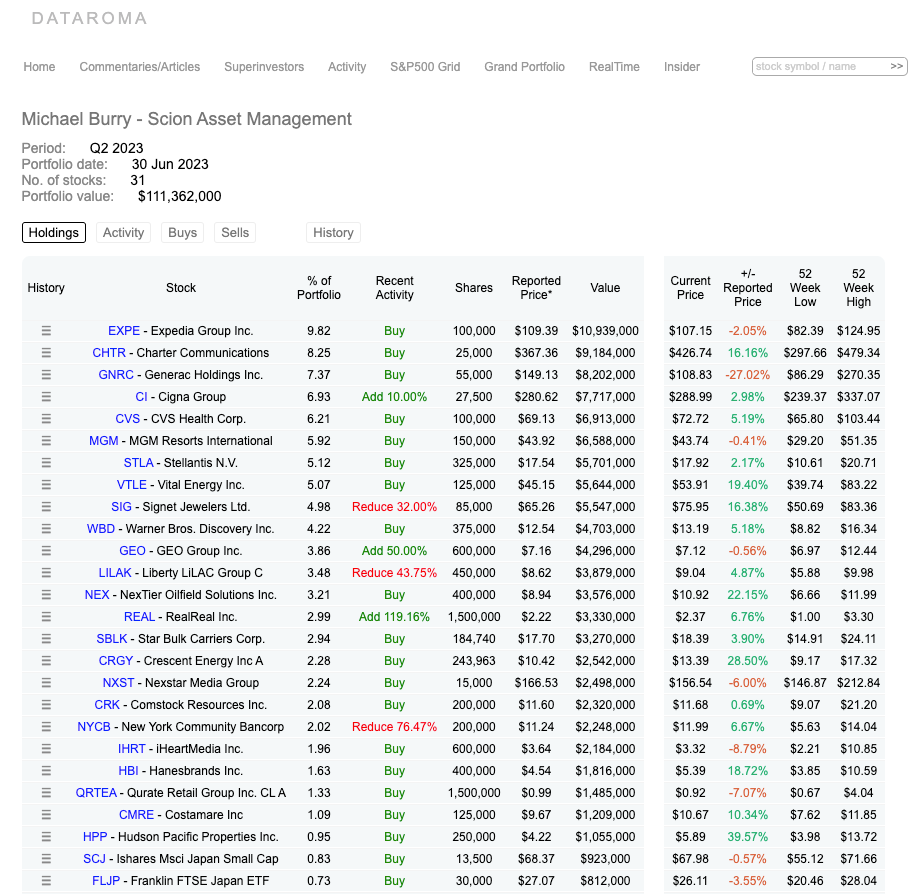 Check the latest additions to the portfolios of renowned investors like Warren Buffett and Michael Burry.