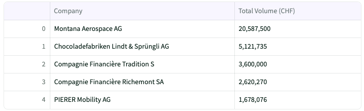 Monthly Summary of Insider Buys & Sells in 🇨🇭Switzerland